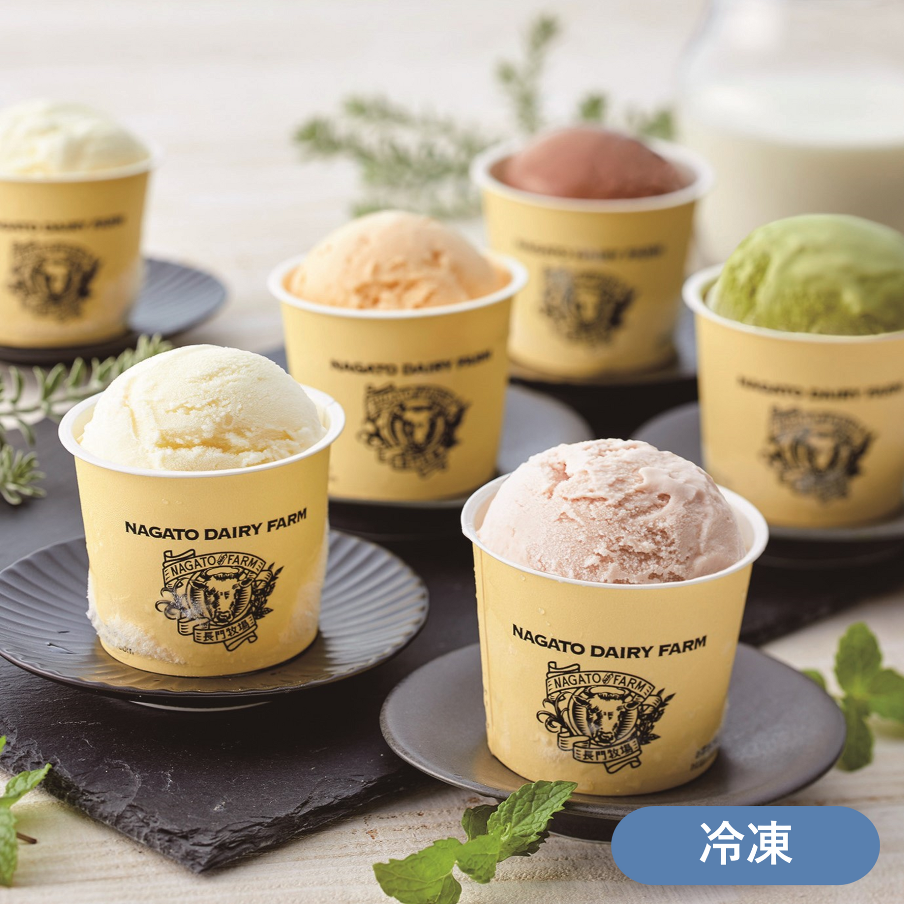 生乳由来の風味と香り、バターを感じるコクのある味わいの「ミルク&バター」と、長門牧場自慢の6つのフレーバーが楽しめるバラエティーセット。