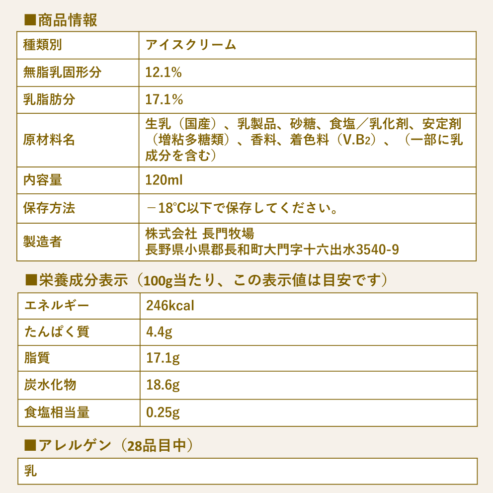 長門牧場アイスクリーム ミルク&バター(120ml) :15個