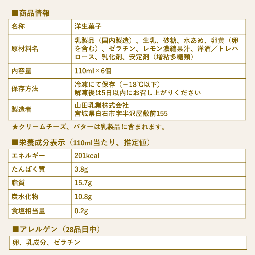 蔵王山麓で生産される生乳と蔵王高原産のクリームチーズなど「フロム蔵王」厳選の良質な乳原料に、カルピス(株)特撰バターを加えた贅沢な味わいのデザートです。