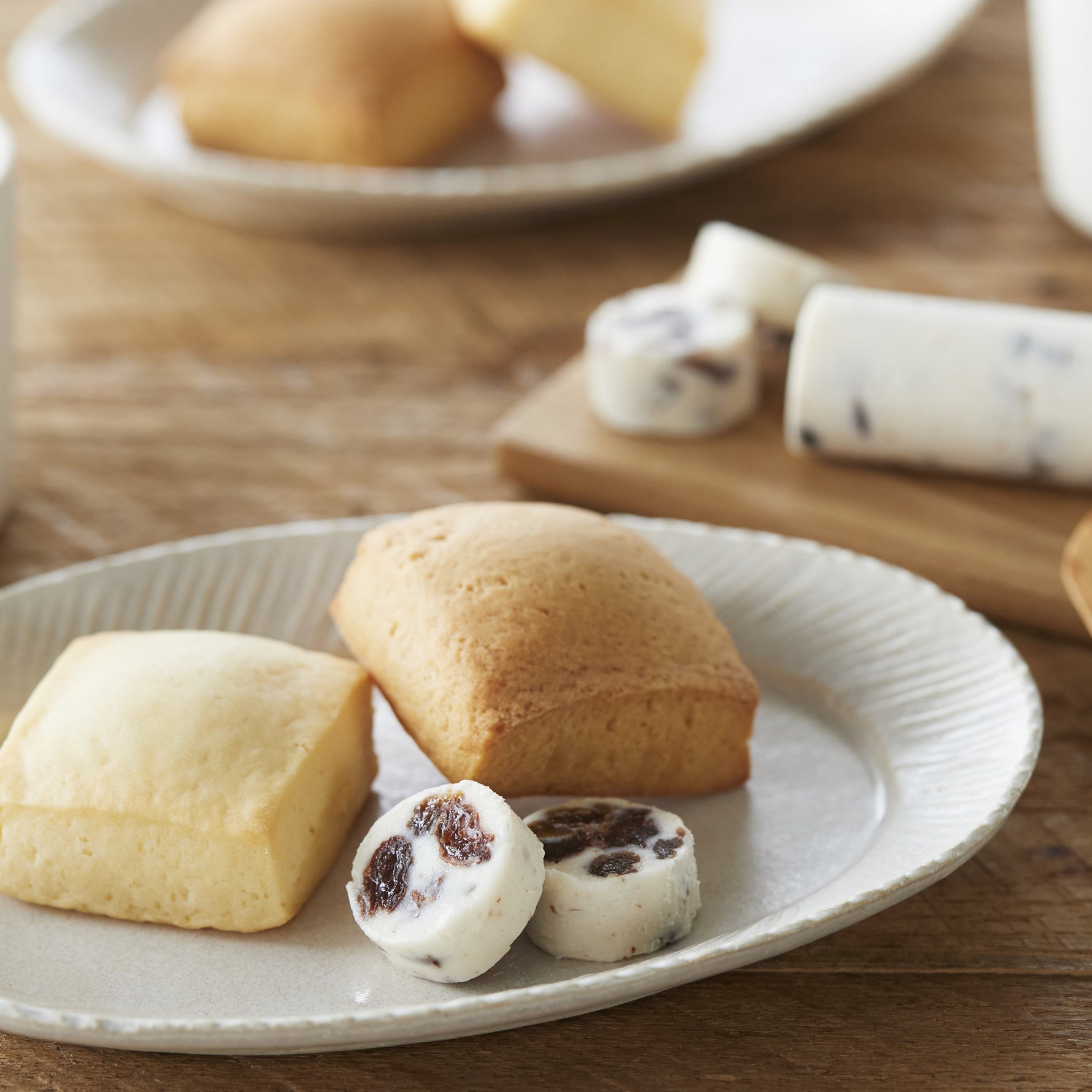 バターの特長が存分に活きるよう選定したレーズンは、レーズン本来の甘酸っぱさやフルーティーな香りが感じられ、配合比率はカルピス(株)特撰バターの風味が最も際立つよう仕上げました。